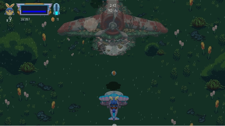 In a clever twist on the bullet hell formula, your goal isn’t blasting enemies out of the air! With Winrose Warren on the brink of starvation, your objective is to make sure the carrot fields yield as much harvest as possible. How? With your little plane, loaded to the brim with seeds and water–perfect to turn barren belts into fertile fields!
