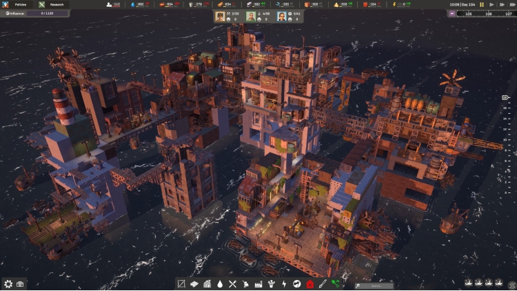 In a dying world overtaken by the endless ocean, your goal is to grow a small settlement into a sprawling vertical city of your dreams. Master a deep, innovative 3D construction system that uses real-world physics simulation and keep the city thriving as you manage resources, logistics, production chains, societal needs, random events, and world exploration. Complete 8 handcrafted Scenarios with unique challenges, or create custom adventures using a robust level editor, and share your creations with the world.