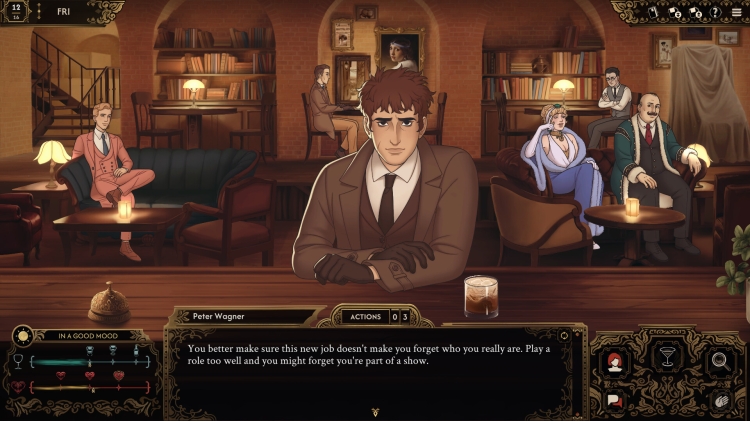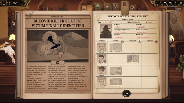 | Listen to your clienteles’ stories and learn about their lives as you unravel a mystery that touches every layer of Bukovie society, from the drunken dandies splashing cash on cocktails, to the crooked cops and seedy lowlifes who try to rope you into their shady schemes. |