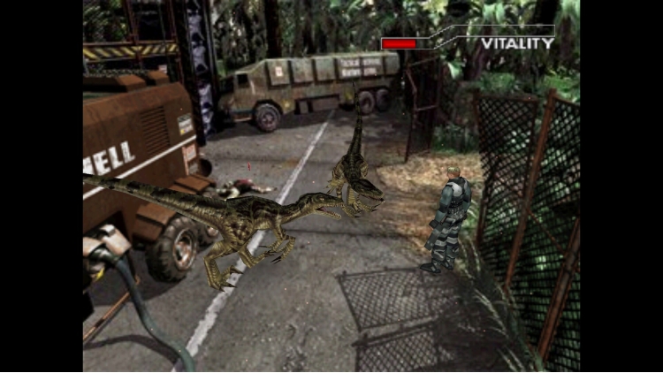 he stage has moved from the facility-centered setting of the previous game to the world of the Cretaceous Period. Dinosaurs attack players in various scenes, including jungles, caves, lakes, and some buildings eroded by plants!