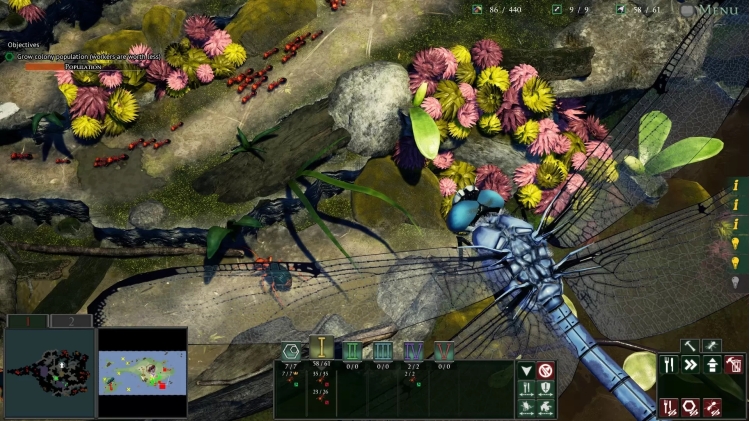 - Push beyond the confines of your nest to see what the world above has to offer – with seeds, nectar, fungus, other insects, and even amphibians on the menu, there's plenty to choose from, but each food source comes with its own strategic tradeoffs and challenges. Will you venture forth and fight off the ladybugs that eat and deplete your source of renewable honeydew drops, or do the surrounding nocturnal creatures present too much of a risk for your fledgling colony? Each decision you make has a ripple effect that can doom your colony if you aren’t quick to react to evolving circumstances.