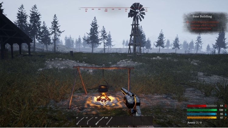 - Dynamic weather: Every time you head out the weather might take a turn for the worse. A clear sky can turn gray, followed by a downpour that leaves you trapped in the mud. Up higher, you might be blindsided by a blizzard or disoriented by the sudden onset of night, exposing you to things that lurk in the dark.