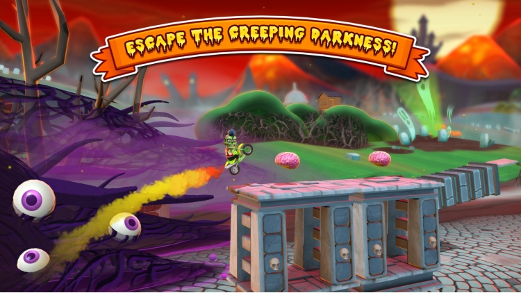 Hunt brains as Zombie, sabotage dark rituals as the Vampire Hunter, and escape the creeping darkness as Pumpkin Head! Claim skulls as the Rider, run the gauntlet as the Chimpanzombie and tame the dreaded Werebear! Each character is also playable in the original game, adding a little Halloween flavour to every thrill and spill!