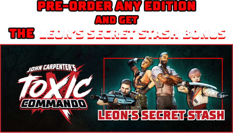 Pre-order the John Carpenter's Toxic Commando Blood Edition to receive Leon's Secret Stash DLC.