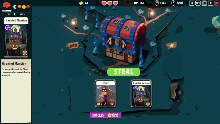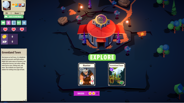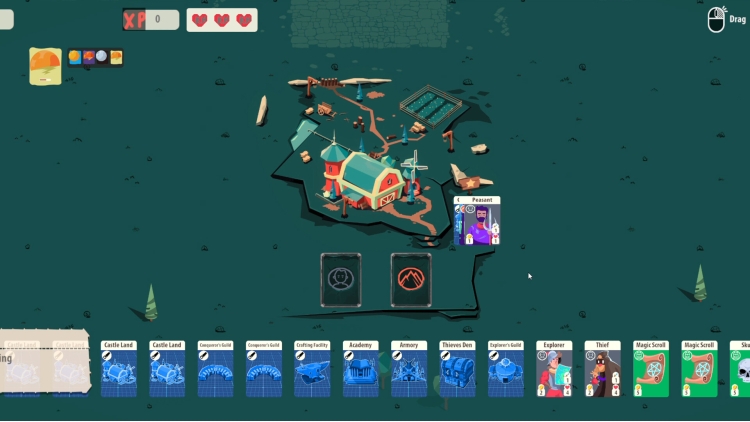 Combine cards to craft tools and weapons to create different units. Farm your lands with farmers, send an explorer to a cave, a thief to steal a mansion or soldiers to conquer a town. Manage your resources to create the best units to defeat every boss.