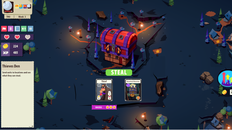 Thieves Den - Use units to steal from locations. Send a thief to a manor, town or castle to see what it gets.