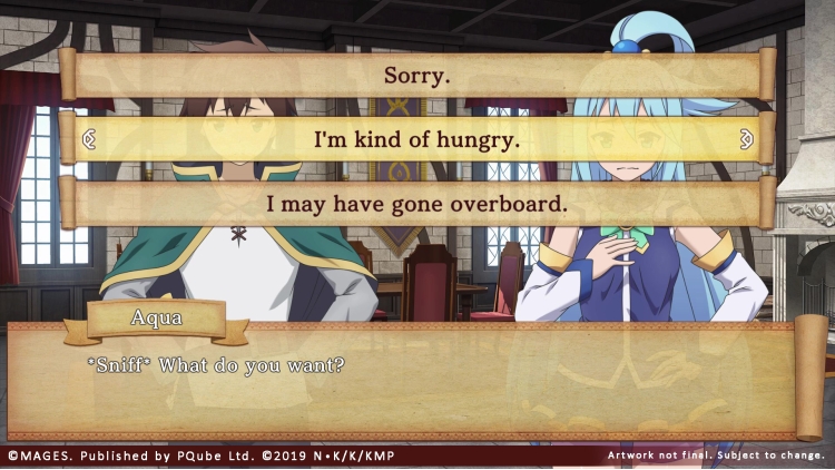 Follow Kazuma and company, as they discover a mysterious Black Slab which curses them with desires contrary to their personality. The gang must now find and feed ingredients to the slab to create outfits which match and fulfil their new desires, and thus break their curse. Are you ready to meet Darkness as a ruthless dominatrix? How about Aqua as a prim and proper goddess? Or Megumin as the proud leader of the Lolita League?