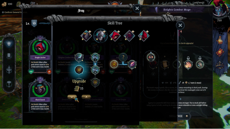 To build up your power, you must replenish your treasury and acquire new magic powers. Raze and pillage enemy lands, and take their gold for yourself. Use that wealth to upgrade your warriors’ stats, or hire more of them. Gather your might by absorbing power from sources of magic, and discover the secret knowledge of Orders to aid your warriors in battle or stagger your enemies with curses.