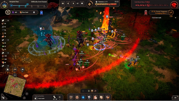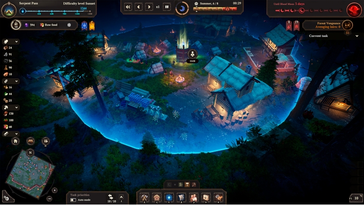 The nights grow increasingly longer and colder, but snowstorms and penetrating frost are not your only enemies... Portals open everywhere, allowing Prince Velimir's servants to hunt down the survivors. The longer you stay in one place, the stronger the Darkness grows and more ruthless the nights become: with every house built, with every lair destroyed the pressure of the woods only gets worse. Ghouls, Leshies, Werewolves, and Night Hags are only some of the creatures that will try to destroy your settlement. You'll have to defend your land against monsters and defeat their Baron so that you are able to move to new lands.