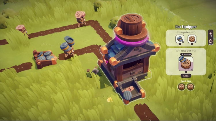 Your Sparks are hard at work, and now they can do it in style! In addition to purchasing hats at the Tailor's, you can now manufacture them yourself on the loom. Equip your Sparks with any of the 10 new hats you've unlocked. Whether they're sporting a rugged helmet or a fancy Flower Crown, these accessories are a crucial part of your operation. Use the new workstations to add and remove hats as needed, giving you a new way to manage your crew.
