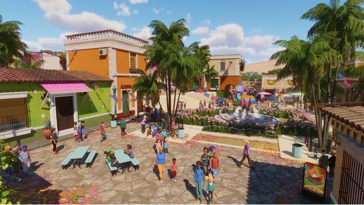 This pack also features a variety of new scenery pieces inspired by the American continent. Create a rustic Southwestern feel with ranch gates and ironwork window guards. Add warmth with charming wall lanterns and streetlamps. Scenery also includes vibrant fabrics, such as a mixture of flags and canopy sets, as well as paper flowers and flags to bring a celebratory and colourful character to your zoos. With these new diverse scenery pieces, you can create a lively and exhilarating atmosphere that will captivate all who visit.