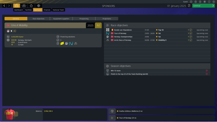In Pro Cycling Manager 25, the choice of sponsors is crucial to your team's success. In addition to the budgetary advantage, sponsors now have their own additional parameters and conditions to meet if you want them to agree to finance your cycling team.