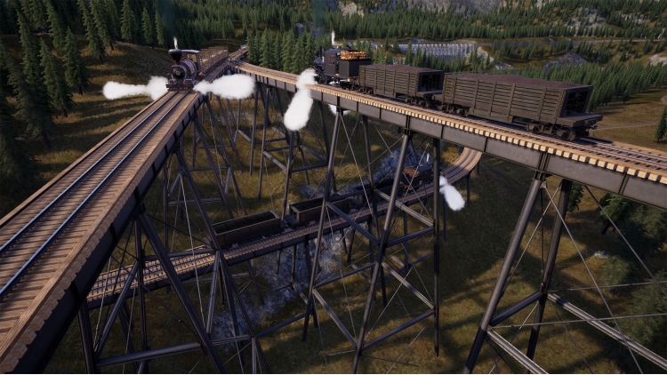 Build tracks, switches, turntables, trestles and more to traverse forrests, planes, rivers, and canyons.
