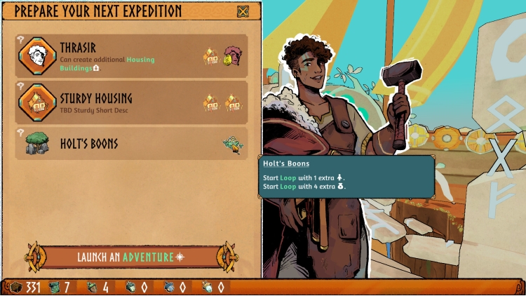 The Holt is your permanent, customizable home and acts as the main hub of the game. Unlock new mechanics and permanent upgrades that will help you rebuild your tribe!