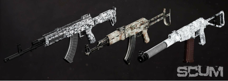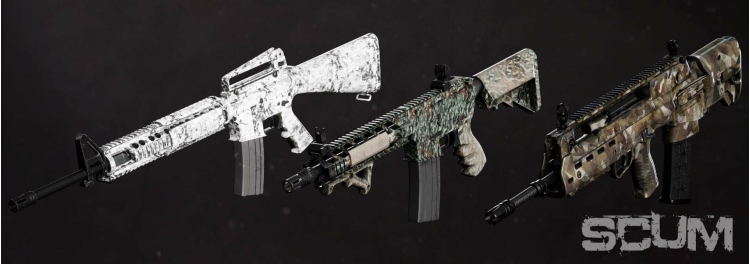 Introducing the SCUM weapon skins pack! This cosmetic DLC will let you customize your weapons to better camouflage them – or just express your personality. With 14 patterns to choose from, each of them customizable with different paints, the sky is the limit on how your weapon can look.