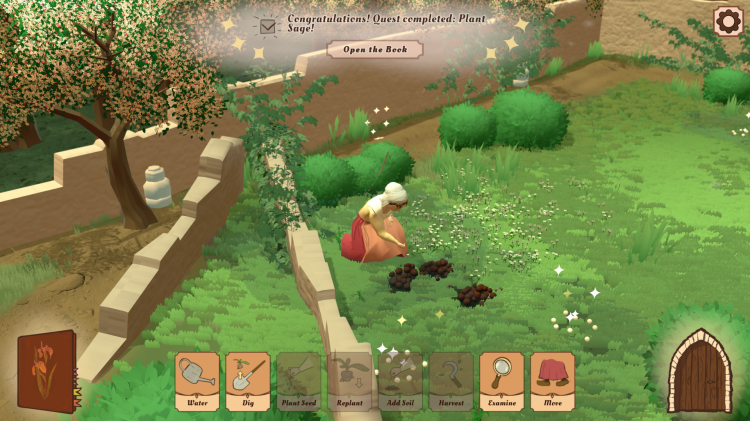 Even with court drama and espionage in the background, your days remain peaceful. The Abbess Garden is cozy at heart - a small world where you garden at your own pace, completing gentle quests and tending plants until they’re happy. Progress the story whenever you feel ready, letting it unfold linearly as you restore life to the abbey grounds.