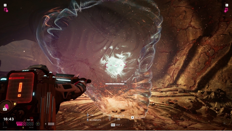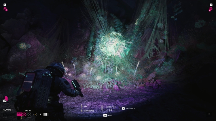 The planet features unique biomes and secrets waiting to be found, but deadly anomalies stand in your way. Levitating rocks and eerie distortions of reality attract attention immediately, while other singularities remain invisible to the naked eye and require special tools to uncover. In all cases, you must be extra careful - or face the risk of instant death, radiation-induced injuries, and even disintegration of time and space. Also, you may want to avoid exploring the planet during hours when intense radioactivity can eat right through your suit. Happy travels!