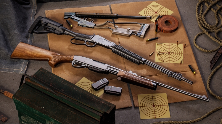 Pump, flip, unfold, and fire with 3 tactile hunting weapons. Featuring new takes on classic favorites like the lever-action rifle, fast-loading pump-action rifle, and the lightweight portable folding shotgun, hunters will appreciate the versatility this curated firearm collection brings to their loadouts.
